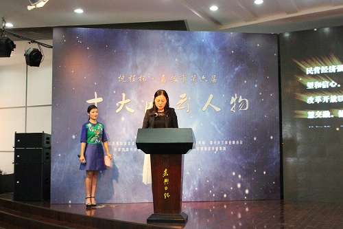 5月11日下午,嘉兴市第六届“十大风云人物”颁奖典礼在嘉报集团隆重举行,嘉兴市十大工业转型升级人物、十大民企风云人物、十大科技创新风云人物、十大电商风云人物、十大青年创业风云人物、十大女性创业风云人物等六大系列奖项花落各家。市领导祝亚伟、陈越强、沈晓红、敖考权出席仪式。市工商联副主席顾小萍为嘉兴市十大民企风云人物致颁奖词。