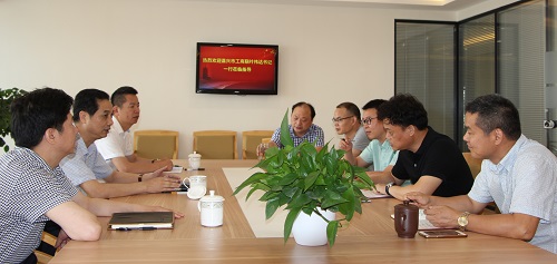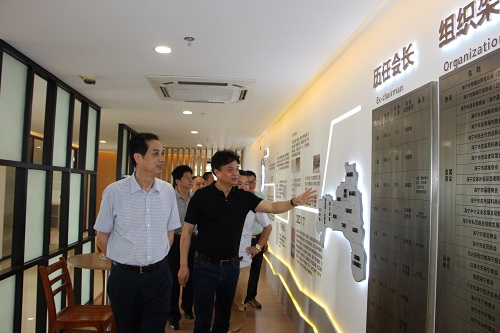 6月8日,市委统战部副部长、市工商联党委书记叶伟达,市工商联副主席鞠峰等一行到海宁市工商联走访调研。调研组在海宁市工商联党组书记顾亚兴等同志的陪同下实地考察了海商总会服务中心现场。