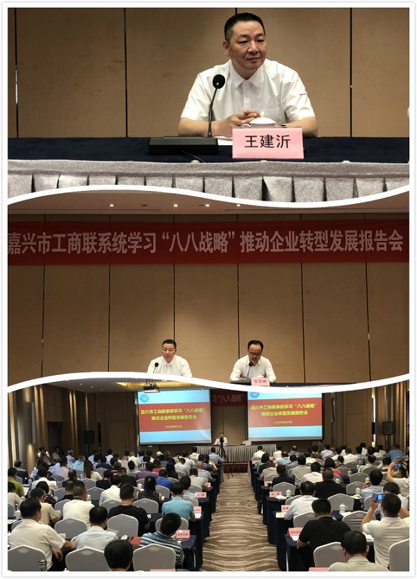 常委会议后,市工商联组织了学习“八八战略”推动企业转型发展专场报告会,特邀省工商联主席、省商会会长、富通集团董事长王建沂作专题报告。王建沂高屋建瓴,站位浙江,放眼全国乃至全世界,为嘉兴市民营企业立足当前、加快转型、实现高质量发展开阔视野、启迪智慧。