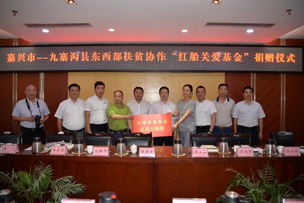 今年以来,市工商联积极推进东西部扶贫协作工作,认真开展精准扶贫“万企帮万村”行动。9月1日,在嘉兴市科技局、市工商联共同开展的“四川行”活动期间,市工商联副主席顾小萍带领市温州商会、市台州商会、市江苏商会的有关负责人专程赴九寨沟县开展扶贫献爱心活动,举行了嘉兴市-九寨沟县东西部扶贫协作“红船关爱基金”首次捐赠仪式。