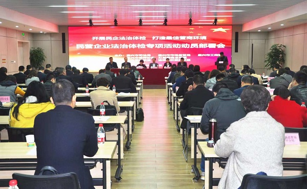 12月5日上午,市司法局、市市场监管局、市工商联、市律师协会联合召开全市“民营企业法治体检专项活动”动员部署会,市司法局党委书记、局长周梅芳,市委统战部副部长、市工商联党委书记叶伟达,市市场监管局党委委员、副局长陆金甫,市工商联党委委员、副主席顾小萍,市律师协会会长冯震远出席会议,市司法局党委委员、副局长、市律师行业党委书记陈建新主持会议。