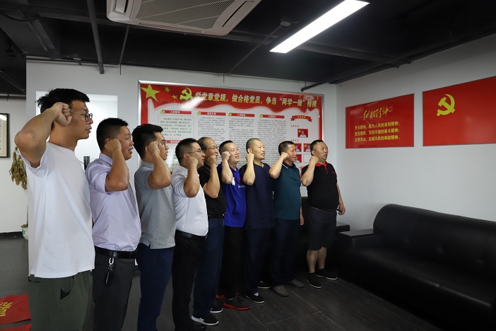 随后,在胡昌军的带领下,全体党员在党旗下重温入党誓词。党员们纷纷表示,要切实增强党的观念和党章意识,以新时期党内各项法规为准绳,严格要求自己做一名讲政治、有信仰,讲规矩、有纪律,讲道德、有品行,讲奉献、有作为,广大商会会员信任肯定的合格党员。