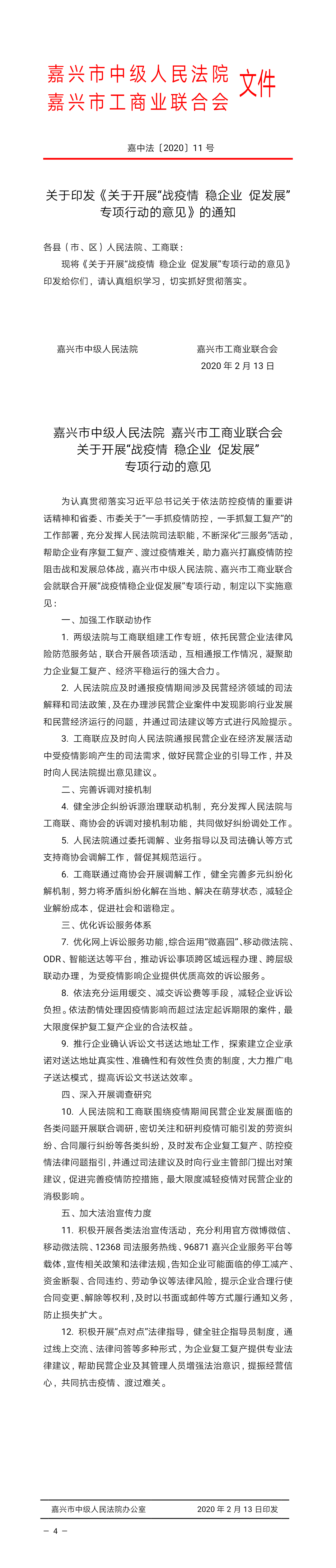 嘉兴市中院、市工商联联合开展“战疫情 稳企业 促发展”专项行动