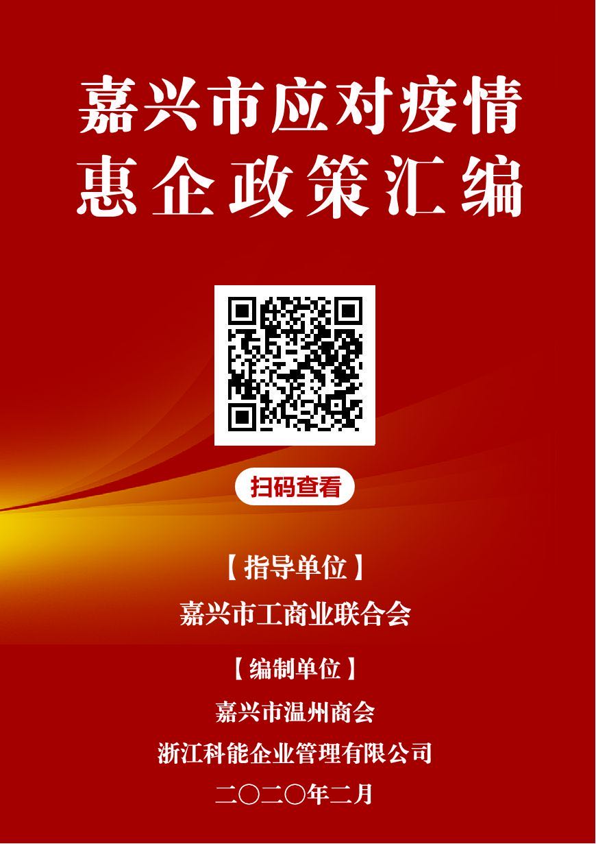 为更好地帮助企业了解形势、熟悉政策、致力发展,在嘉兴市工商业联合会的指导下,嘉兴市温州商会、浙江科能企业管理有限公司整理汇编了国家、浙江省和嘉兴市出台的66个政策文件,供广大企业查阅参考。
