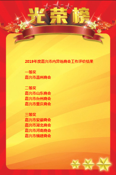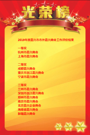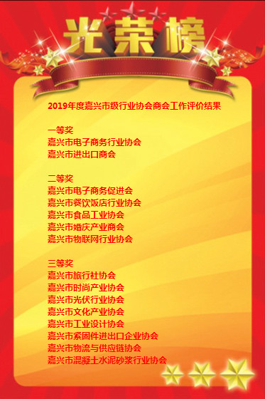 现将2019 年度嘉兴市级行业协会商会、市内异地商会和市外嘉兴商会工作评价结果公布如下: