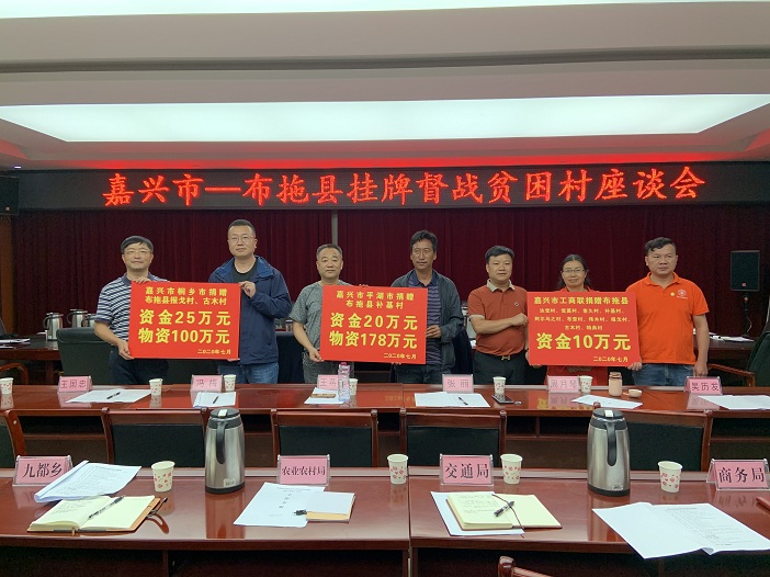 会上,举行了捐赠仪式,嘉兴市工商联代表3家异地商会向嘉兴市结对的布拖县10个挂牌督战贫困村共捐赠10万元帮扶资金(其中市河南商会捐赠4万元、市福建商会捐赠3万元、市黑龙江商会捐赠3万元)。此外,各县(市、区)工商联组织发动6家企业和4家商会筹集205万元帮扶资金,并协助募集价值共计475万元帮扶物资,定向捐赠结对村。