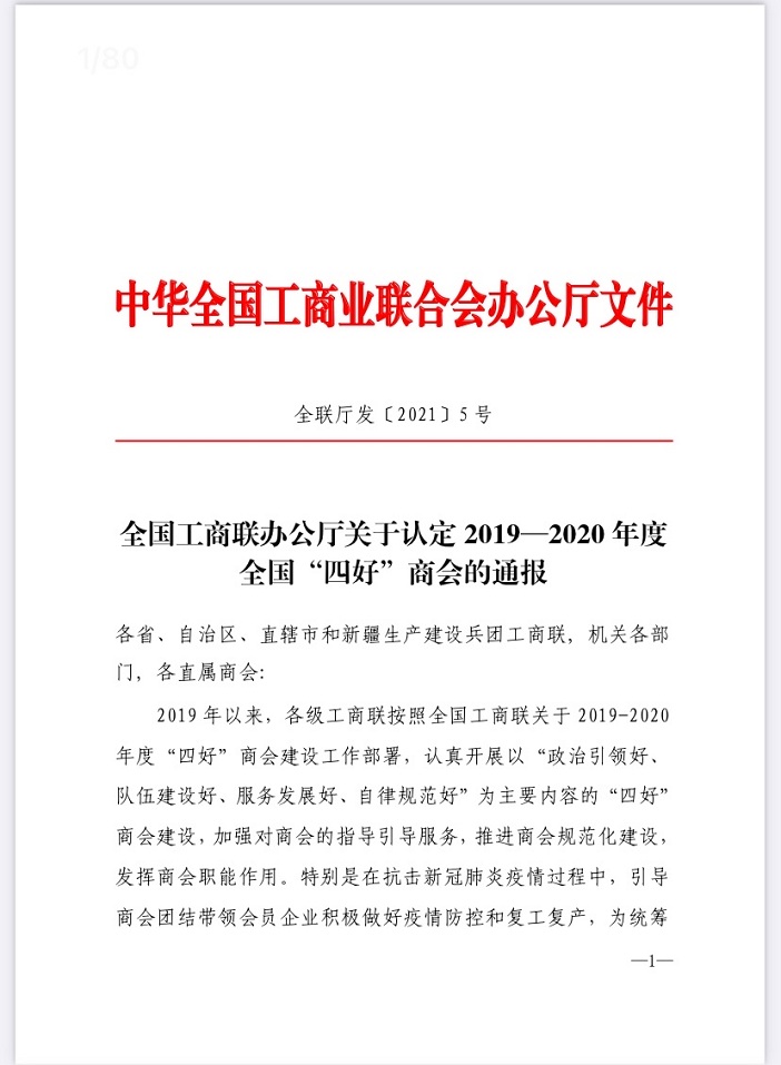 1月24日,全国工商联办公厅通报2019-2020年度全国“四好”商会认定名单,嘉兴8家商协会榜上有名。截止到目前,嘉兴市工商联已培育全国“四好”商会10家,分别为:嘉兴市温州商会、嘉兴市安徽商会、嘉兴市河南商会、嘉兴市湖北商会、嘉兴市台州商会、嘉兴市电子商务行业协会、嘉兴市进出口商会、嘉兴市食品工业协会、嘉兴市餐饮饭店行业协会、桐乡市温州商会。