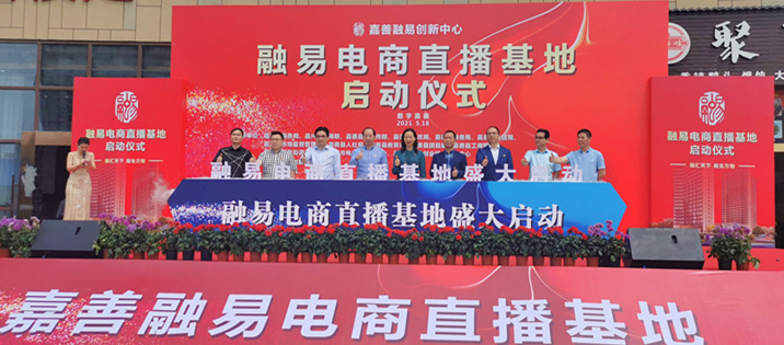 融易电商直播基地由嘉兴市广东商会会长候选人单位融易集团投资运行,以打造国家级直播电商综合示范基地为目标,落户中国归谷嘉善科技园,总投资3000万元,配备了专业的运营团队,将打造一个集网红培训、直播带货、品牌孵化、跨境电商、生活配套等功能于一体的直播经济总部基地。基地不仅合作了淘宝大学、抖音商学院、快手等知名电商平台,而且签约合作各类商协会、学校、企业、银行等多方资源,致力于提升基地知名度、打造电商龙头企业、形成电商产业链。