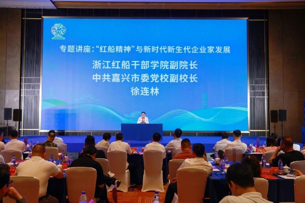 “百余年前,在嘉兴南湖的一艘游船上,一群平均年龄不到30岁的年轻人,秉承改天换地的执着信念,担起实现民族独立和人民解放的重任,成立了中国共产党,为黑暗的旧中国带来了一缕光明……”活动期间,浙江红船干部学院副院长、中共嘉兴市委党校副校长徐连林以“红船精神”与企业发展为主题授课,强调“开天辟地、敢为人先”的精神内核与新时代企业家精神的深度契合。